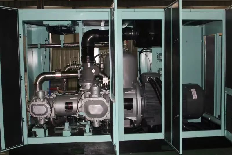 7、无油两级喷水单螺杆空压机,广泛应用于各种领域如医疗、食品饮料、电子、汽车、实验室、 印刷等,其低能耗、无油、清洁、安全、可靠、低温、无润滑油环保的特点,使其成为许多关键领域的理想选择。